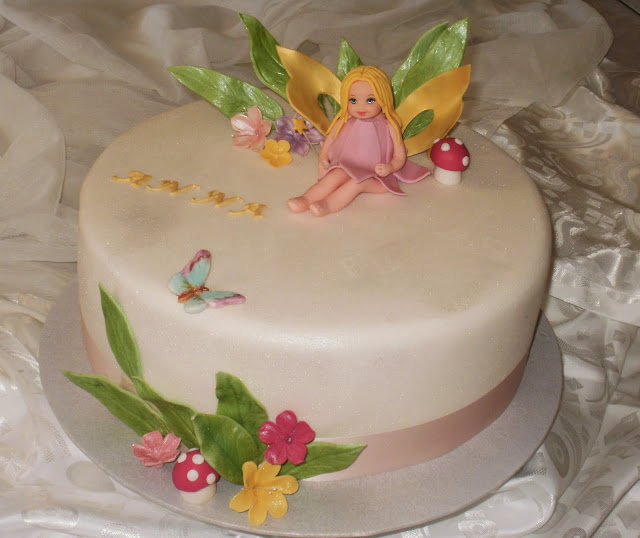 Τούρτα γενεθλίων για κορίτσια, στολισμένη με ζαχαρόπαστα.Fairy cake-Τούρτα μικρή νεράιδα