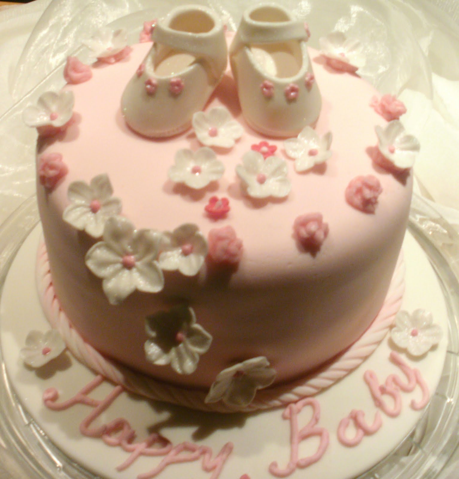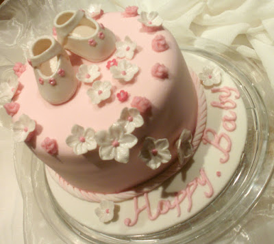 | Ενα γλυκό δωράκι για το νεογέννητο, αυτή η τούρτα , στολισμένη με bebe παπουτσάκια φτιαγμένα με ζαχαρόπαστα Mυρωδάτο αφράτο κέικ βανίλιας με γέμιση δύο στρώσεις γλάσο σοκολάτα και μία στρώση λευκής κρέμας. Η επικάλυψη είναι με κρέμα βουτύρου και ζαχαρόπαστα |