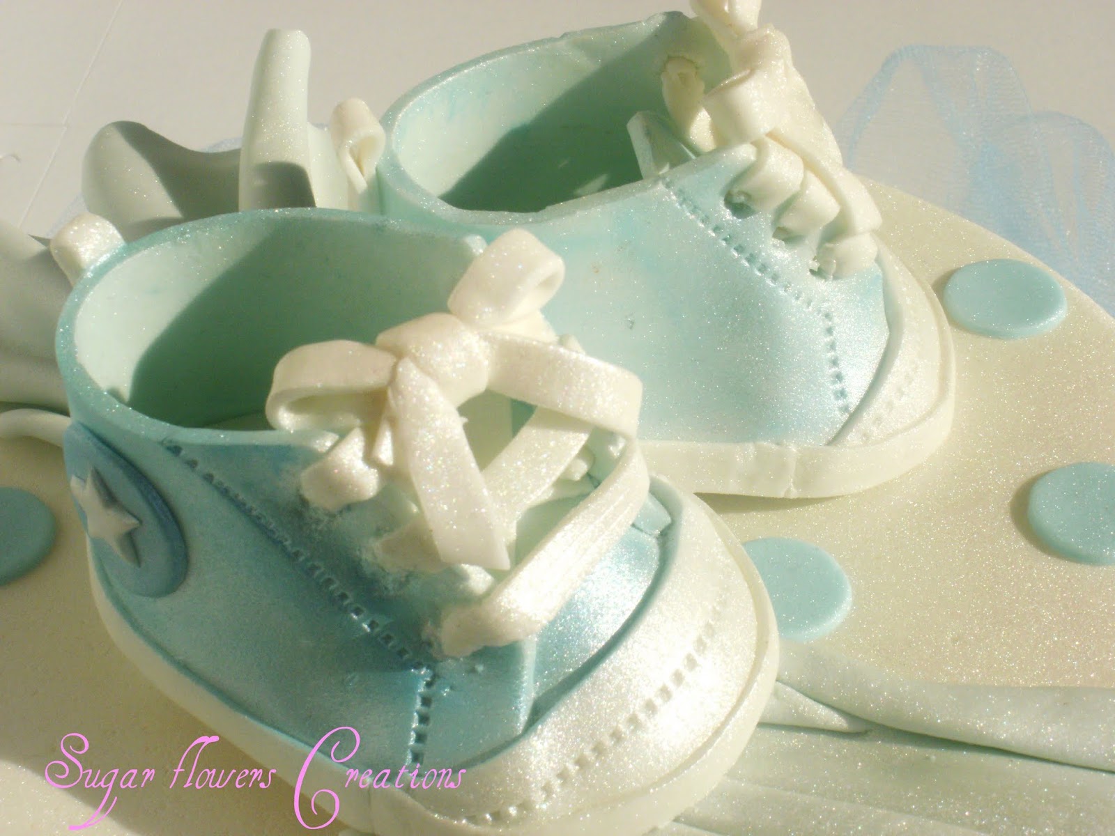 | Τούρτα για το νεογέννητο αγόρι, με αθλητικά παπουτσάκια απο ζαχαρόπαστα |