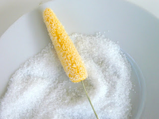 3) Περνάμε λίγο νερό στην επιφάνεια και το βουτάμε σε κρυσταλική Ζαχαρη