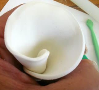 9) Το στερεώνουμε, γυρνάμε τις άκρες και δίνουμε σχήμα στο λουλούδι.