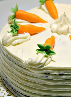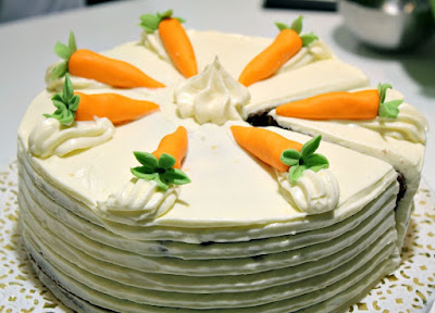 Τέλος καλύπτουμε το γλυκό με την υπόλοιπη κρέμα και το διακοσμούμε. Εγώ έφτιαξα μικρά καρότα απο ζαχαρόπαστα
