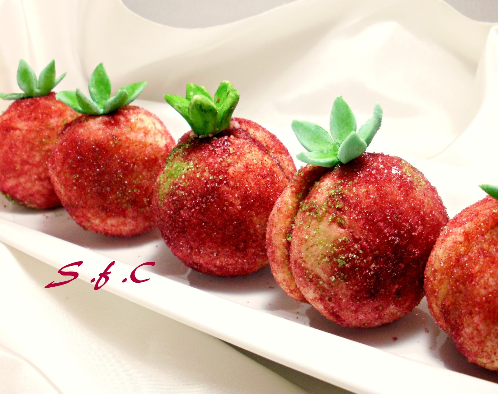 Με κρέμα λευκής σοκολάτας για γέμιση και χρωματισμένη ζάχαρη εξωτερικά.