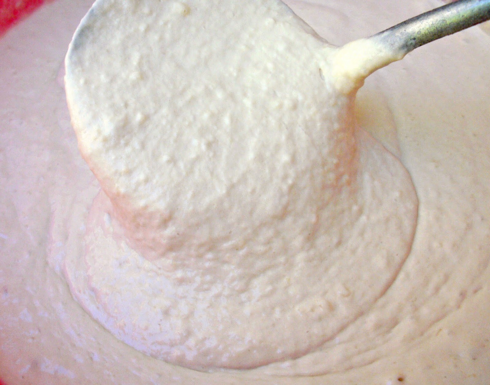 Όταν είναι έτοιμος ο χυλός το ανακατεύουμε απαλά να βγεί ο αέρας και να καθήσει