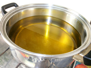 Βάζουμε σε βαθύ σκεύος αρκετό σπορέλαιο να κάψει..