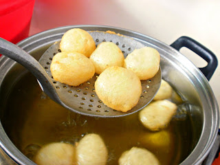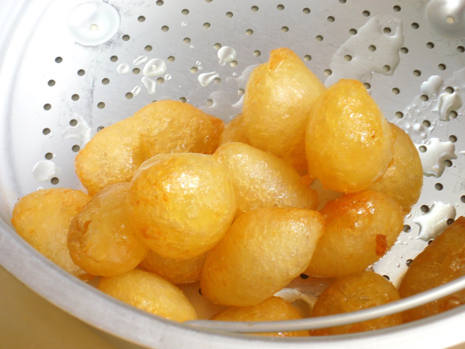 Όταν χρυσίσουν τους βγάζουμε με τη τρυπητή κουτάλα και τους βάζουμε για λίγο σε σουρωτήρι που θα έχουμε δίπλα.