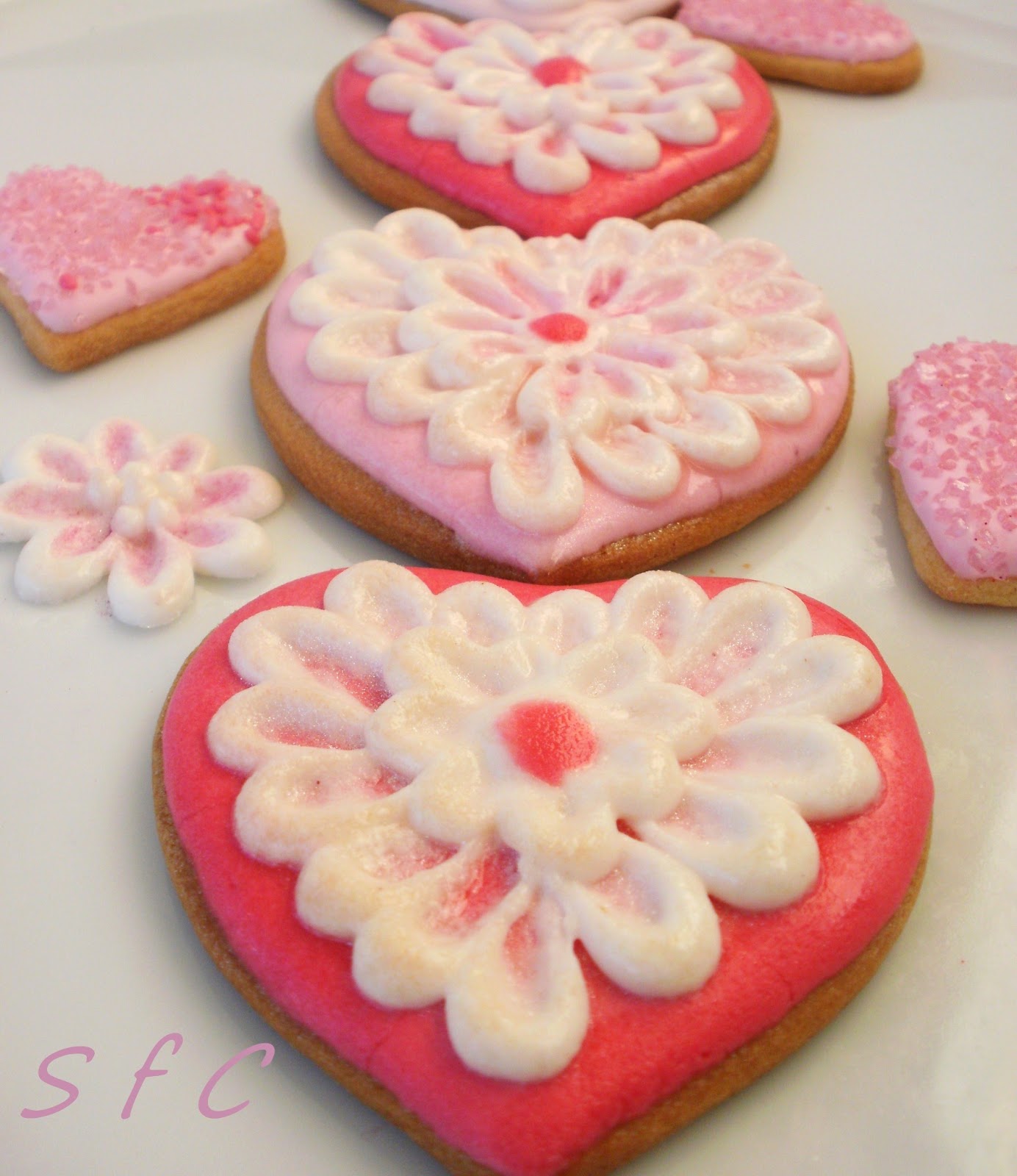 Εφτιαξα λοιπόν κι εγώ τις μπισκοτένιες καρδιές μου και τις "κέντησα" με Royal icing.
