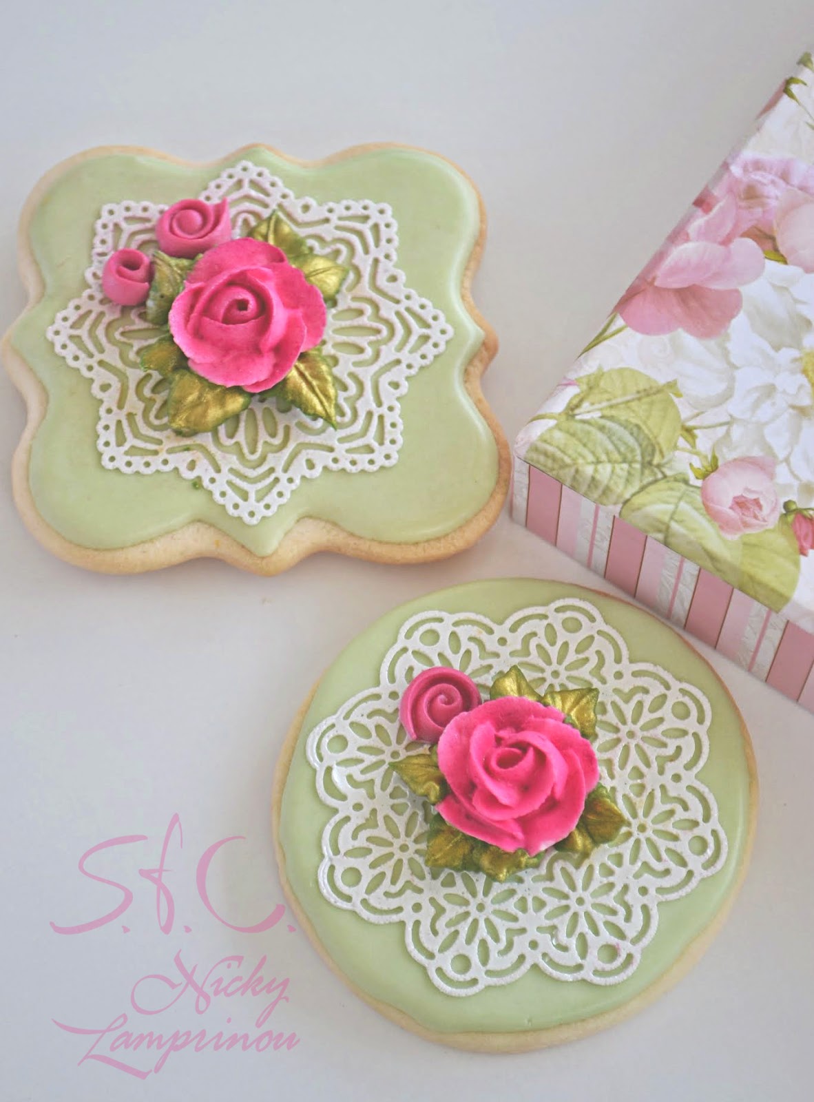 Η βάση είναι με royal icing με λίγες σταγόνες απο το moss green της Wilton.
