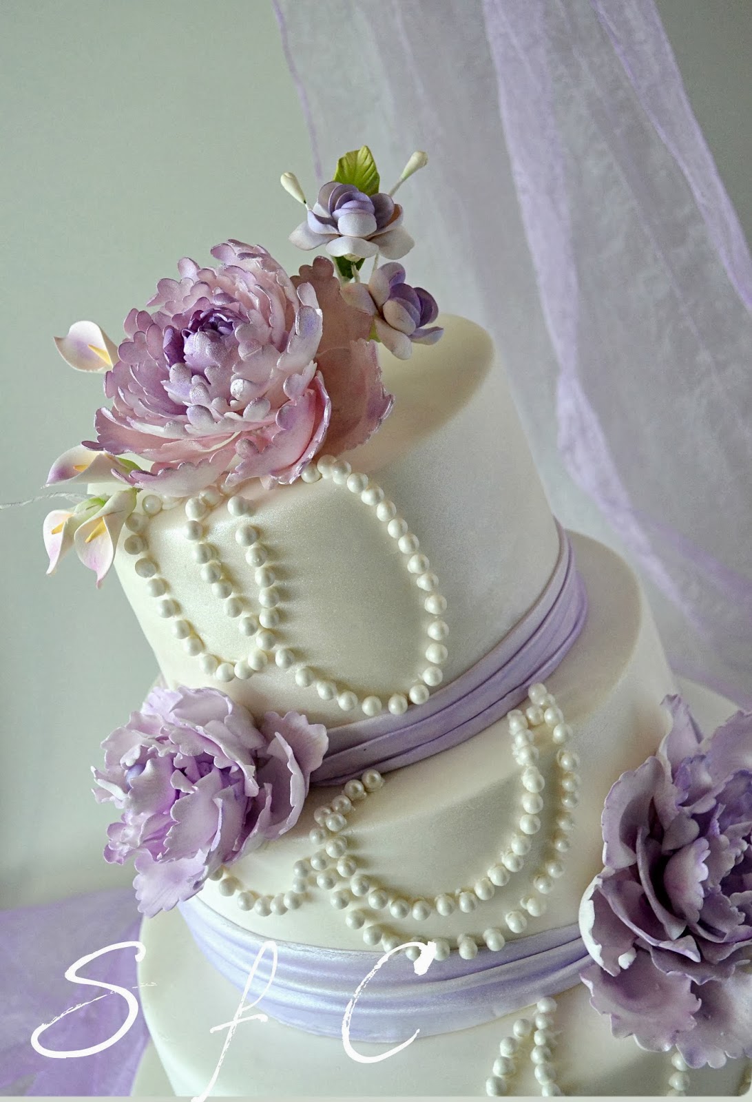 Τετραώροφη γαμήλια τούρτα με ζαχαρόπαστα και πεώνιες φτιαγμένες με Gum paste
