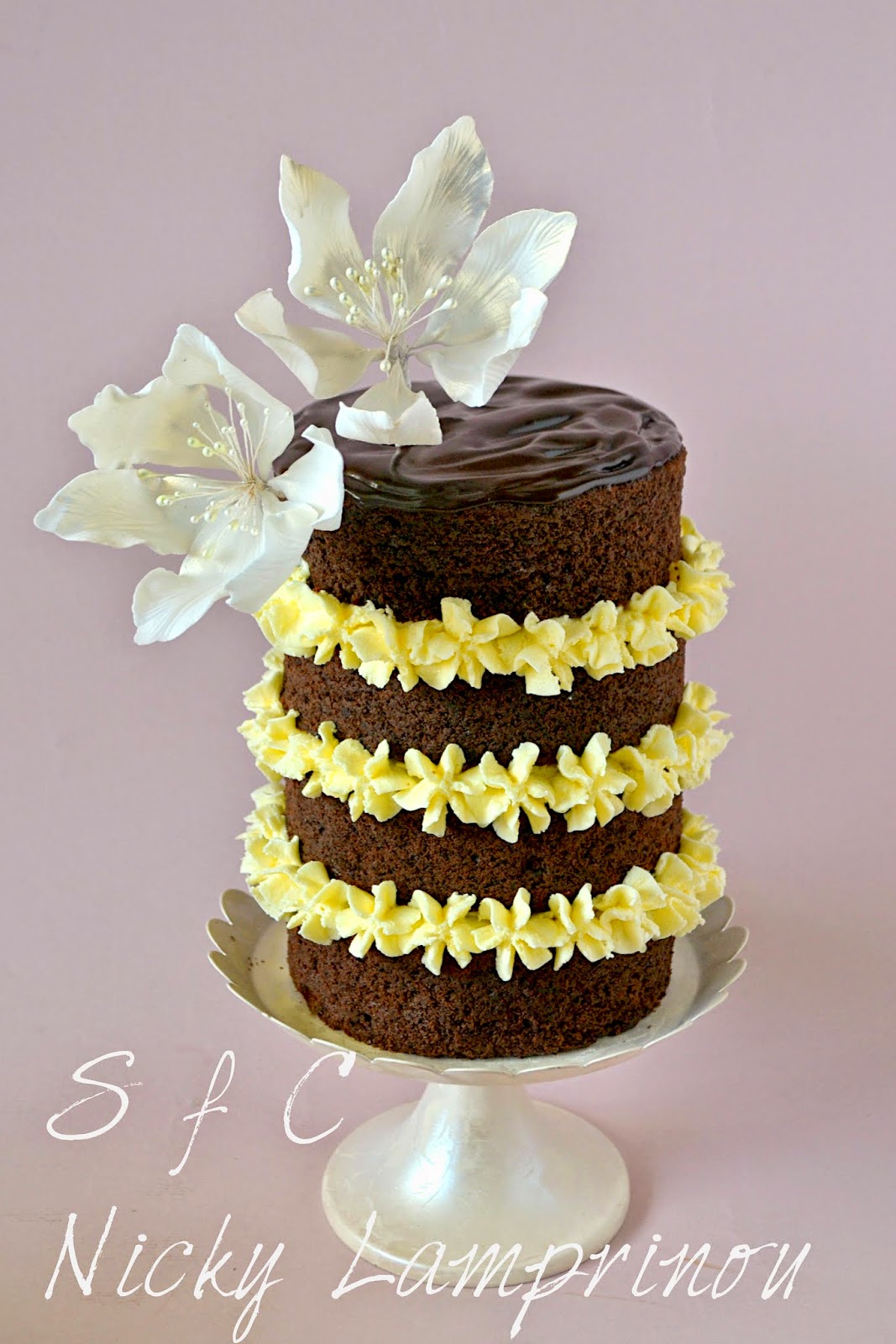 Η δική μου εκδοχή, ένα naked cake με μαρέγκα βουτύρου , γκανάς σοκολάτας και χειροποίητα