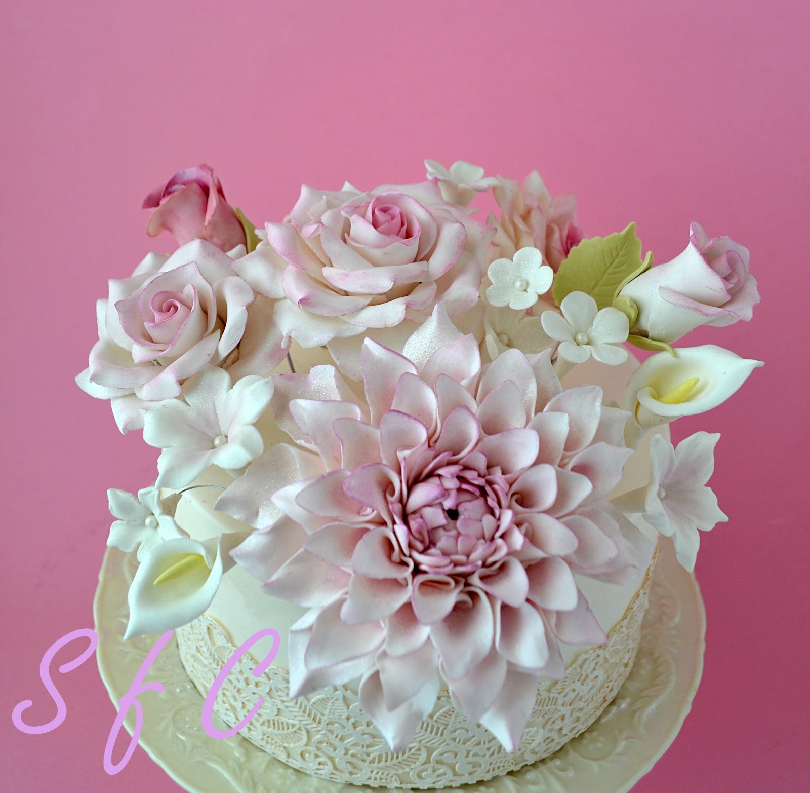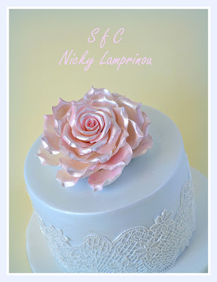 -Διακοσμητικό μεγάλο τριαντάφυλλο (με πάστα λουλουδιών) και δαντέλα για το τελείωμα.