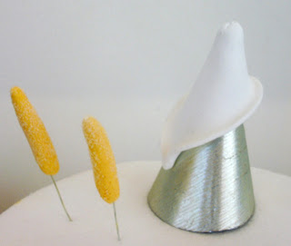 1) Παίρνουμε μικρή ποσότητα απο τη Ζαχαρόπαστα και προσθέτουμε λίγες σταγόνες κίτρινο χρώμα