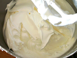 Και θα έχουμε μια αφράτη κρέμα. Πρός το τέλος ρίχνουμε μια πρέζα αλάτι και τη βανίλια.