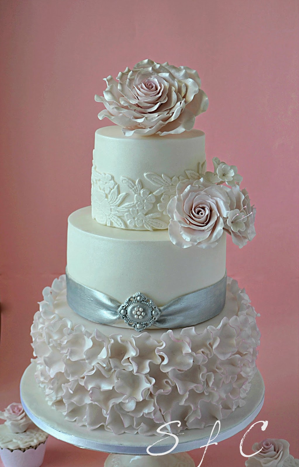 Ράφλες, δαντέλα. και ασημί κορδέλλα με καρφίτσα απο ζαχαρόπαστα.