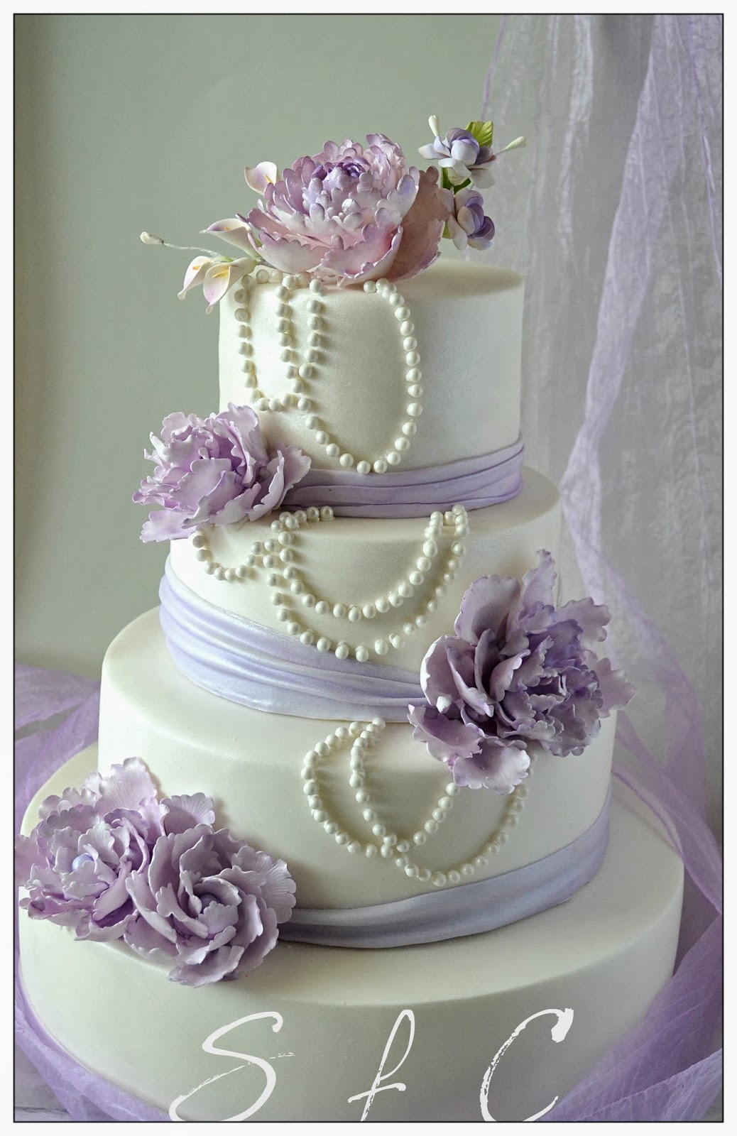 Τετραώροφη γαμήλια τούρτα με ζαχαρόπαστα και πεώνιες φτιαγμένες με Gum paste