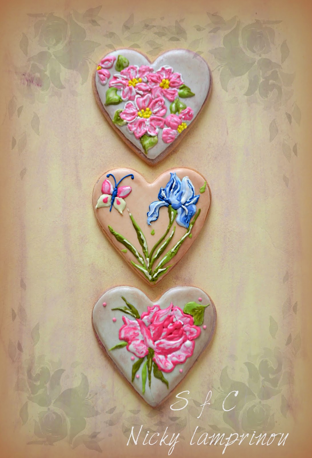 Μπισκότα σε σχήμα αυγού διακοσμημένα με Royal icing και ράφλες λουλούδια