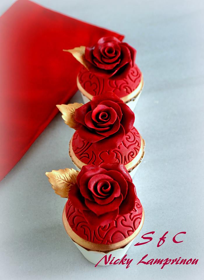 Ο στολισμός ειναι με ζαχαρόπαστα . Τα κόκκινα τριαντάφυλλα ειναι φτιαγμένα με πάστα μοντελισμού Saracino.