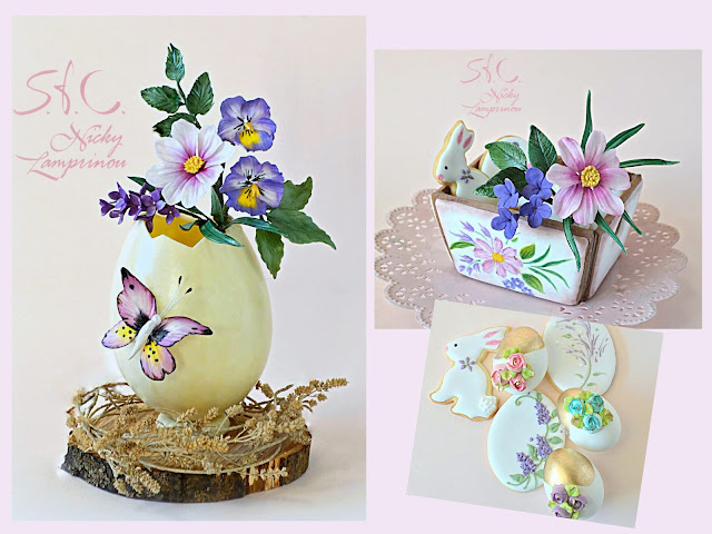 4) Αυγά διακοσμημένα με λουλούδια (royal icing) και χρυσή επίστρωση.