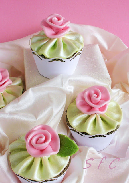 Silk Ribbon rose Cup cakes