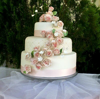 Toύρτα γάμου με ρόζ τριαντάφυλλα - Pink rose Wedding cake