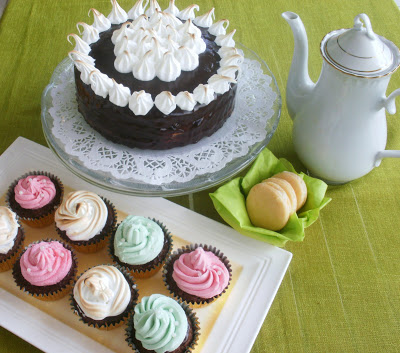 | Κέικ σοκολάτας με διπλή γέμιση cream cheece, επικάλυψη γλάσο σοκολάτας και Ιταλική μαρέγκα |